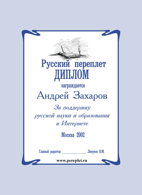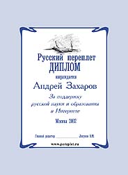 Награжден дипломом РП за поддержку русской культуры и образования в Интернете