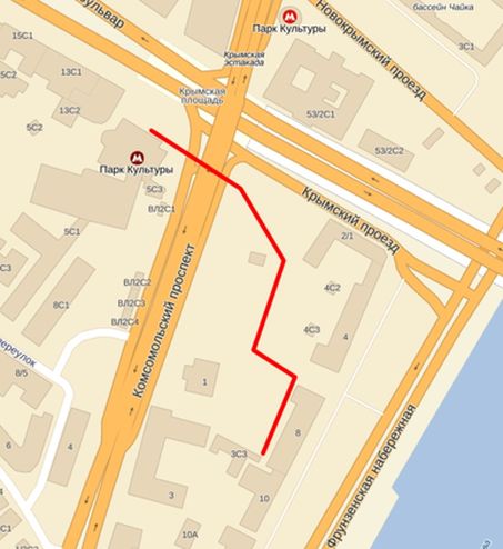 Проезд: ст. метро "Парк культуры" - кольцевая, далее 3-4 минуты пешком.