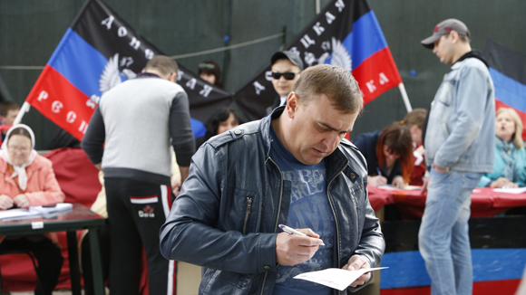 "Вечером в воскресенье в Луганской и Донецкой областях завершилось голосование о статусе регионов. В бюллетене был лишь один вопрос: <Поддерживаете ли вы акт о самостоятельности Донецкой/Луганской Республики?> на русском и украинском языках.