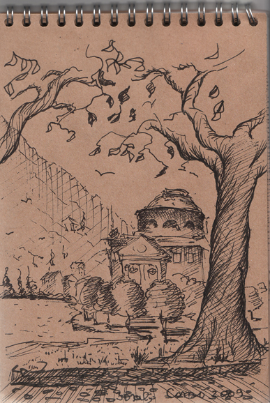 vМой дом. Киев, поселок Куликово поле, ул. Мелиоративная д.55, (давно уж нет ни дома ни улицы... да и Киев за границей), Нарисовано по-памяти в 1981г. |