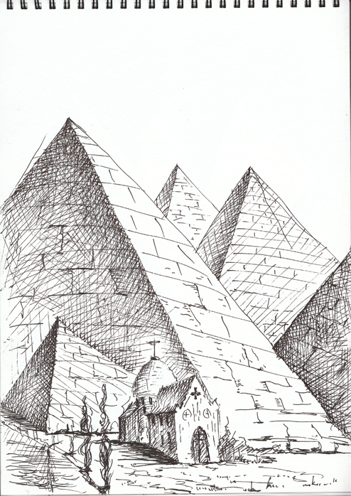 "Узники науки". Дворик библиотеки университета г. Феррара. Библиотеку устроили в здании бывшего сахарного завода. Рисунок подарен Льву Титарчуку - ученому, другу и человеку - который провел здесь не один год. Надо иметь в виду, что университет г. Феррара заканчивал Николай Коперник. Ноябрь. 2016. Италия. |