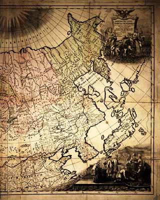 А ещё через четверть века Россия начала обстоятельно осваивать Северную Америку и российское сознание стало уже американско-азиатско-европейским. Это прекрасно в 1758 году отражает <Карта представляющая Изобретения Российскими Мореплавателями на Северной части Америки с около лежащими местами учиненныя. Соч. при Импер. Акад. Наук. Тит. Советником Иваном Трускотом> (Рис. 3).