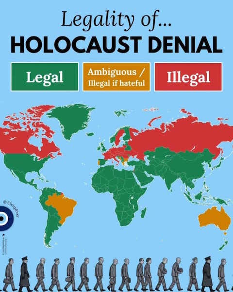 В результате Холокоста в Европе погибли около шести миллионов евреев. Авторы карты красным отметили страны, которые на законодательном уровне запретили . . . |