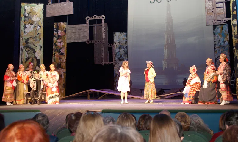 23 февраля давали комедию, но с вокальными партиями, баянами и частушками. В пьесе Леонида Фролова так и написано: «Первый, народный, частушечный мюзикл! Озорная комедия в двух действиях». Однако для думающего зрителя смех оказался сквозь слезы.