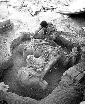 гадрозавра Вани перед <упаковкой> в гипсовый и деревянный чехлы. |