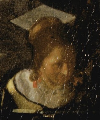 Вермеер тупо даёт портрет бюргерства, самого` свеженародившегося капитализма - интерес к тому, что ниже пояса – к вещизму, к потребительству. Для того столько места мраморному полу (санитарная чистота обеспечена), бархатной скатерти (подстать, наверно, и то, что на скатерть ставится), высоте окон и потолка (хорошо дышится) в картине о… музыке. О духовном. Плевать на духовное! Главное – выйти замуж ей за вот этого. Вермеер даже отступает от натуроподобия: в зеркале девушка не на ноты или клавиши смотрит, а на молодого человека. Оба некрасивые.