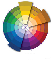 И что такое гармоничное сочетание? √ Во-первых, монохромное. В пределах одного сектора цветового круга. Во-вторых, так называемое, аналогичное: в пределах трёх соседних секторов, например, синий - сине-зелёный - зелёный. В-третьих, так называемое, дополнительное: сочетание из секторов, противоположных друг другу, например, жёлтый - фиолетовый. В четвёртых, так называемое, разбитое дополнение: вместо одного из дополнительных секторов берутся два с ним соседних.