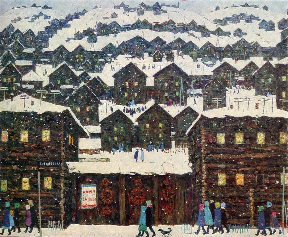 А Домашников не подтрунивает. Он просто счастлив вместе со своими персонажами, что сегодня вечером будет кино и танцы. (Вспоминаю, что в нашем городе было несколько кино и танцы в нескольких местах три раза в неделю: в среду, субботу и воскресенье. – Так это была уже советская как бы Западная Европа – нечего сравнивать.)