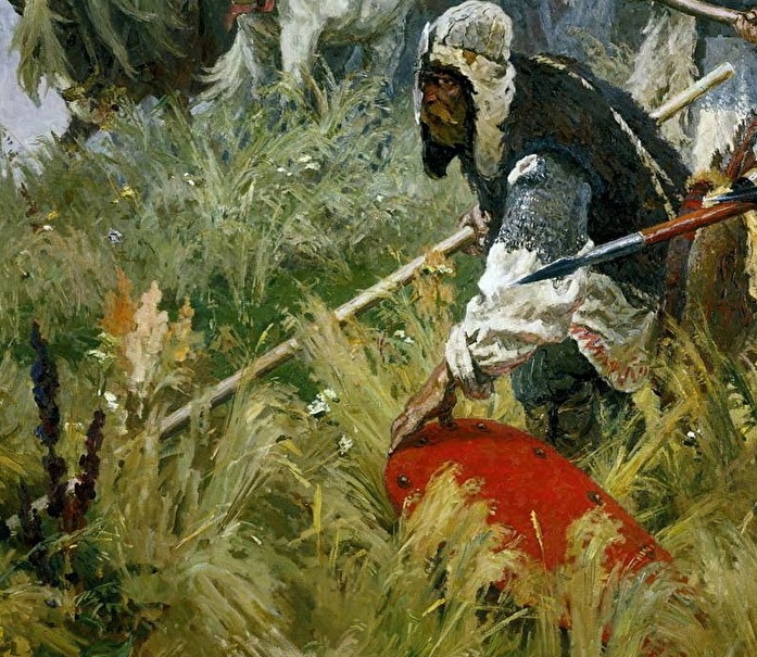 С. В. Иванов. Баскаки. 1909. И ему интересно, как выглядят именно воины. Он аж даже вышел сколько-то вперёд перед всеми, желая рассмотреть. Любознательный. А этот