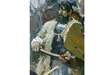 Это ополченец (с топором и тоже без шлема). Он-то пришёл сюда сам. Обычай такой. Но ему нехорошо на душе. Сам князь Дмитрий