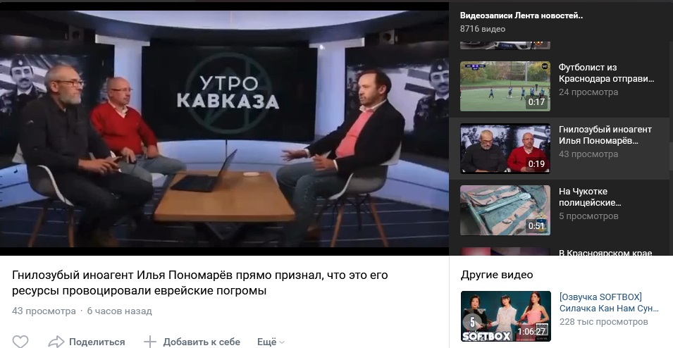 Когда-то (см. тут) я себе позволил в своём искусствоведческом канале обсудить фейк о числе погибших российских военнослужащих на СВО. – Почему б мне не обсудить ещё раз? На этот раз – вмешательство Ильи Пономарёва (бывшего депутата Госдумы, удравшего на Украину) в организацию еврейских погромов на Северном Кавказе в связи со страшным обстрелом Газы Израилем. Я нашёл видео от “Лента новостей Краснодара Z Новости Краснодара” с его, Пономарёва, признанием https://vk.com/video-66541811_456245409 : "Ну и вообще все эти протесты в значительной степени координировались через… из… наш телеграмм-канал “Утро Дагестана”, на который я призываю подписаться. Интересный. Оперативный. И, собственно, то, что происходит в Дагестане, лучше всего через него: это надёжный источник”. На этот сайт “Гнилозубый иноагент Илья Пономарёв прямо признал” указал Яндекс при запросе: “останнє інтерв'ю Іллі Пономарьова”. Что там Пономарёв, доказывает то, что я его лицо помню. Что там его лицо не вставное говорит такой кадр из видео: