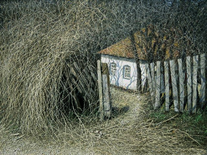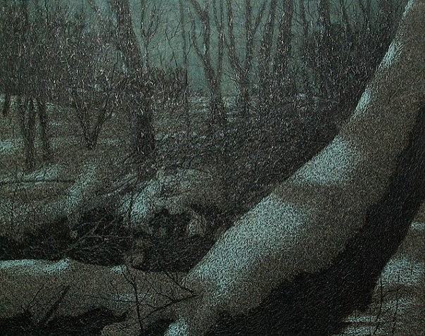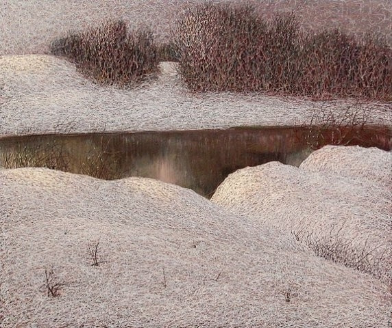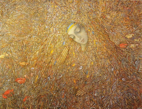 Я самовольно перестал списывать названия, которые он стал вдруг давать своим произведениям. Он портит их. Здешностью. Тутосторонностью. Типа ⌠Тече рЁчка Снов. 1984■. Но это и хорошо, если художник сам себя не понимает. Почему возник стиль модерн на грани XIX-XX веков? √ От скуки мирного развития. Бедные беднели, богатые богатели, и все √ одинаково пошлые и низменные. И не видно было выхода из этой скуки. Марчук собственно то же видел в своей жизни. Он даже ужасы катастройки и реставрации капитализма начала 90-х не застал √ ⌠Протягом 1989√2001 рокЁв мешкав у АвстралЁ©, КанадЁ й США■ (Википедия). А там √ от сытости заскучать можно. Вот и доводил себя до предвзрывного состояния специальной техникой исполнения картин: ⌠...ничто не отвлекает его от работы, которую Марчук называет утомительной, скучной и неинтересной для столь подвижного человека, как он. Сколько километров тончайших нитей пришлось ему провести на холсте и бумаге, чтобы сплести две тысячи картин!■ (http://www.gordon.com.ua/tv/marchuk). Предвзрыв от скуки и порождает ницшеанство, а то √ странные картины. Можно даже удивляться, насколько чутки были к идейным врагам советские деятели от искусства, отказавшиеся считать его художником. 30 октября 2014 г.