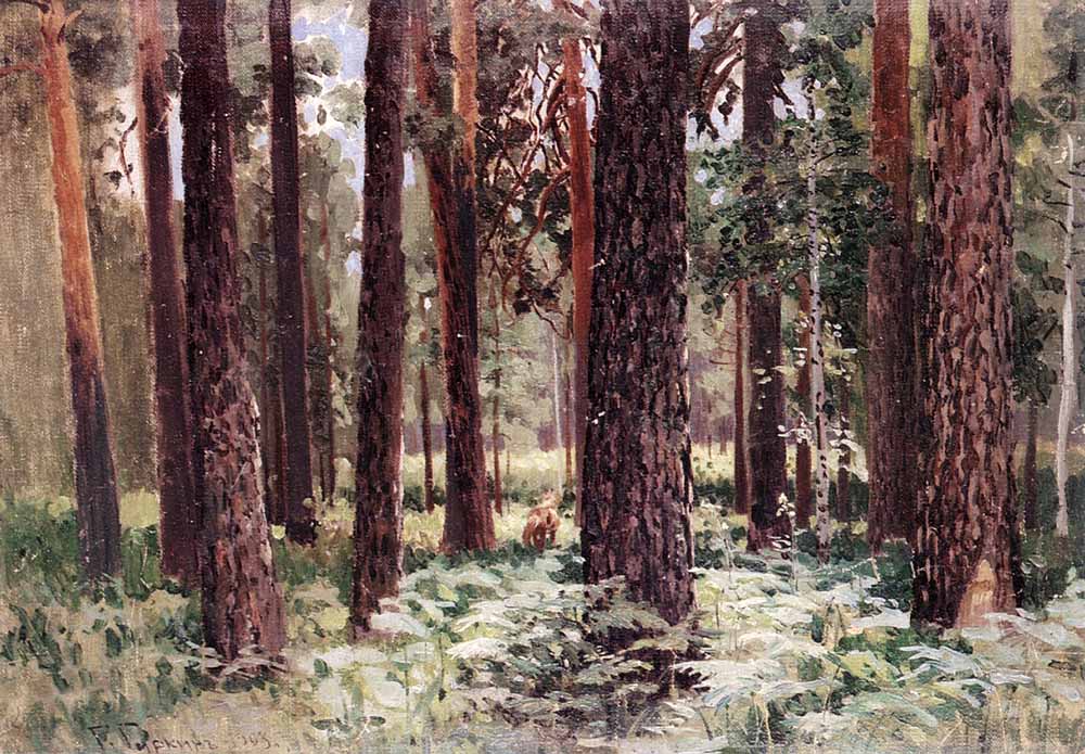Гуркин. Аносинский бор. 1908. Про Гуркина пишут, что он был учеником Шишкина… Ну сравним с подобной вещью Шишкина.