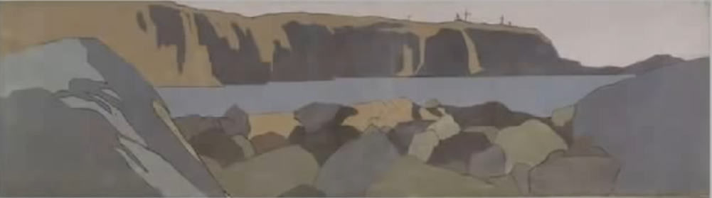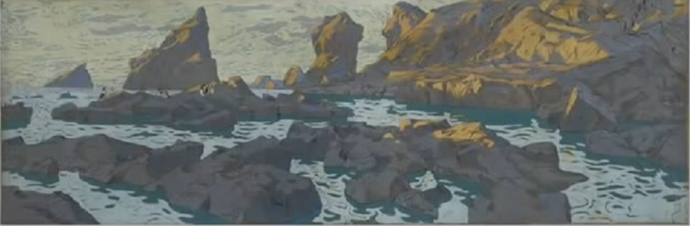 А теперь признайтесь себе, читатель: вам не надоело смотреть эти репродукции? Да, в них замечательно разработана цветовая композиция противопоставления противоположных цветов на цветовом круге: оранжевого и синего (оба - отусклённые).
