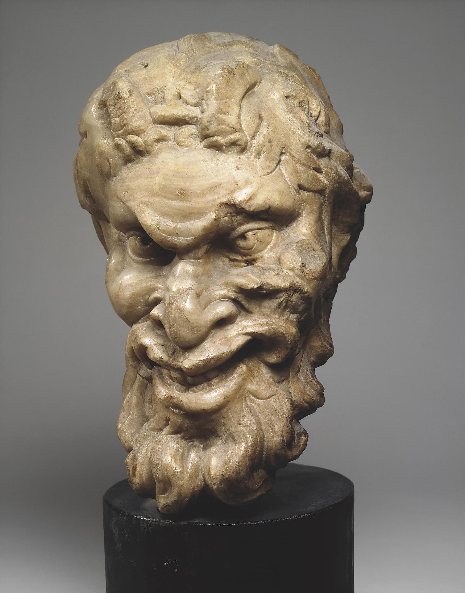 "Мраморная маска “Смеющийся фавн” в галерее Барджелло считается “потерянной” скульптурой Микеланджело. Она не совсем соответствует описанию Вазари и Кондиви, поскольку во рту есть только два зуба, которые больше напоминают клыки, а между ними высовывается язык” (Википедия).