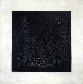 Что замалевал Малевич. Один крайне высокомерный человек в одном своём писании, выглядящем – как всегда у него – некими неоспоримыми скрижалями завета между людьми и им, непогрешимым, допустил всё же прокол и кончил тот опус так: "А вы как думаете?” (http://www.pereplet.ru/cgi/obzor.cgi?id=440#440). И в его тексте есть утверждение, что Малевич – не искусство. Поскольку раз (см. тут) мне, к слову говоря, случилось убедительно постигнуть его, Малевича, “Супрематизм. 1915”, то лучше пробовать возражать непогрешимому по поводу знаменитого “Чёрного квадрата”. И возражать мне захотелось, прочитав такую фразу: "Произведение как конструкция. Художественное произведение является замкнутым в себе целым, и каждый элемент этого целого имеет значение (функцию) только в самозначимой структуре этого целого, а не в соотнесении с чем-то вне этого произведения находящимся (например, с природой, действительностью, идеей, сознанием автора и т.п.). Если эта структура что-либо "отражает", то это не имеет значения для объяснения данного целого: функция отражения "трансгредиентна" для искусства. Задача искусствоведа заключается в том, чтобы раскрыть конструктивное единство произведения и конструктивную функцию каждого из составляющих его элементов” (http://olsios.nethouse.ru/static/000/000/537/285/doc/cc/07/04e8e6ababeddf45ca4fe33776fdf79c3e2a.pdf). (Надо объяснить слово “трансгредиентный”. Это выходящий зa пределы дaнной сферы или дaнного объектa, переступaющий пределы чего-то.) Поскольку приведённая цитата – это экстремизм в искусствоведении, я сразу по противоположности вспомнил свой неожиданно для самого себя познанный как выражение ницшеанства (конкретно – иномирия, что без пространства и времени) “Супрематизм. 1915”, и захотелось вернуться к “Чёрному квадрату”. Встал вопрос (хотя бы из-за недавнего – из-за 100-летней годовщины создания этого произведения – шума в СМИ, что под изображением что-то было нарисовано), можно ли считать это замалёванное элементом целого? Просто глазу-то человеческому оно не дано… А соблазнительно было б считать его элементом. Тогда сам чёрный квадрат, как другой элемент, имел бы функцию зачёркивания.