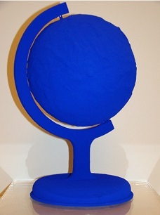 Ив Кляйн. Голубой мир. 1957. В данном случае я угадал. - Почему? - Я руководствовался тем, что синему (одному из трёх основных цветов: синему, жёлтому и красному) противопоставлены оттенки другого основного цвета - чего-то около жёлтого. То есть не абы что по цвету подбиралось, а по цветонауке. То есть - сознательного происхождения вещь. И - по моему экстремистскому эстетическому мировоззрению - не может быть признана неприкладным искусством. Это - неприкладное околоискусство. Напомню: чтоб я назвал искусством, нужна некая непонятность как признак происхождения и подсознания. В представленном "Голубом мире" представляются выпяченными школьные годы (глобус) как время отроческого идеализма (голубое). Внешкольная действительность (взрослая, наверно) представлена негативно (грязными оттенками жёлтого, переходящего в коричневый). - Всё шито белыми нитками. Другое дело, что кому-то (наверно, правящим кругам) нужно культивировать мироотношение, противоположное коллективизму, с которым СССР недавно победил в мировой войне и теперь, в 1957-м, угрожает миру капитализма. Поэтому имеет смысл коллективизму как-то противостоять. Индивидуализмом. Пусть и из ряда вон выходящим и не понимаемым и не принимаемым западной публикой. Не зря его первая вылазка в область неприкладного искусства