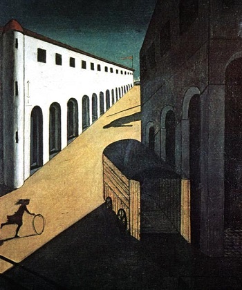 Джорджио Кирико и Карло Карра. Начну с себя, как это часто я делаю. Отсутствие признания заставляет меня радоваться любым текстам, в которых я нахожу подтверждения тому, до чего я дошёл своим умом. Так, можно сказать, своим умом я дошёл до именования словом “иномирие” идеала ницшеанства. Обожаю лапидарность… А исследователи искусства зачастую, наоборот, маскируют свои мысли. Так до иномирия я додумался из-за Шалыгиной, а она почему-то темнит и прямыми словами с Чеховым (ницшеанцем) иномирие не связывает. Так судите сами, читатель, как мне маслом по сердцу было прочесть такое: "Родоначальником метафизической живописи является Джорджо де Кирико, который еще в период своего пребывания в Париже в 1913-1914 годах создавал пустынные городские пейзажи, предвосхищавшие будущую эстетику метафизизма; его серия “Площади Италии” придавала фантастическое измерение условной итальянской классической архитектуре, воссозданной им на картинах. В городских пейзажах передавал ощущение тревожной застылости мира, его отчуждённости от человека. Увлечение философией Фридриха Ницше…” (http://www.art.ioso.ru/wiki/index.php/%D0%96%D0%B8%D0%B2%D0%BE%D0%BF%D0%B8%D1%81%D1%8C_XX-XXI_%D0%B2%D0%B5%D0%BA%D0%B0). Я оборвал цитату, ибо дальше совпадение со мной кончалось (там появлялся Бёклин – идейный противополюс Ницше), и чего было мне портить бочку мёду ложкой дёгтя (тут же ещё и про безнадёжную плохость Этого мира шепнули – чем не сласть мне, тоже акцентирующему ту же причину экстремизма ницшеанства)…