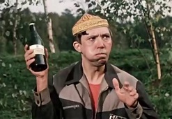 Опа. Ещё раз. Первый раз было с рязановским “С лёгким паром!” (см. тут). Теперь – с Гайдаем. Я поверил прилепинским словам: "Если вспоминать о войне, то классический момент из этого фильма, когда верзила на стройке выбирает любую работу, лишь бы не попасть в пару с Шуриком, то получилось как раз с Гайдаем. Военком в 42 году, оглядывая новобранцев, спросил: “Кто в пехоту хочет?” - “Я”, - вызвался Гайдай. – “Кто в артиллерию?” - “Я”, - крикнул Гайдай. – “Кто в разведку?” - И снова Гайдай: “Я”. (https://www.youtube.com/watch?v=F-nf6mAy5uo). То есть 19-летний Гайдай был вполне в русле инерции Октябрьской революции, которая началась политической самодеятельностью масс (в 1918 до начала гражданской войны было 30 независимых Советов по областям России, и сами Советы были изобретением масс). Все понимали, что социализм – это ежедневное увеличение самоуправления за счёт государства вплоть до исчезновения государства при коммунизме. А гражданская война всё смешала и дальнейшая история повела страну не к социализму, так понимаемому, а к лжесоциализму. И гражданскую инициативу (а с ней и проявления анархии {без центральной власти}) стали, официально поддерживая, неофициально гнобить. Анархию вообще довели до понимания той как хаоса. Война, да, востребовала и инициативу на местах. И Гайдай в 42-м был таким воодушевлением полон. В так, вообще-то, и не вылезшей из мещанства стране, такой активизм был деятельностью по переделыванию чуть не человеческой природы (если забыть, что в ней Справедливость тоже спрятана {ещё с первобытного коммунизма, та же русская крестьянская община, например}). И можно где-то понять Лимонова: "Вопрос может быть поставлен двояко: советская ли действительность была столь пошлой, что создавала шедевры вульгарности: “Бриллиантовую руку” или там “Иван Васильевич меняет профессию” или “Приключения Шурика”. Или всё же эти выше перечисленные ребятки во главе с Гайдаем (были и другие мэтры пошлости) задали стране обывательский, антигероический тон, лад, настрой? Для нашего с вами этого моего исследования не важно, верна ли первая либо вторая попытка, важно, что пошлость стала климатом застоя. Как ясно и то, что советские мужчины, символизировавшиеся Никулиным, Вицыным, Моргуновым, Папановым, Леоновым и даже талантливым Андрюшей Мироновым, не могли победить в Афганистане сухих моджахедов ислама” (Там же). Но. Что если Гайдай тайно издевался над мещанством? Утрируя, удесятеряя обычность. Например, все пьют. – Насколько Гайдай не терпел пьянство, можно судить по тому, что он не взял Высоцкого на роль Остапа Бендера, хоть тот пробу прошёл блестяще. И как осмеять алкоголика, Балбеса, скажем, так, чтоб это довести до чрезмерности и, понимай, ненависти? – Довести до чуда. Бутылка пива ему в руки идёт как бы по щучьему велению. А чтоб эффектней это выглядело (бутылка тёмная и на фоне зелени не очень видна, надо, чтоб с первого захода это была бутылка кефира, белая, - ошибочка-де вышла).